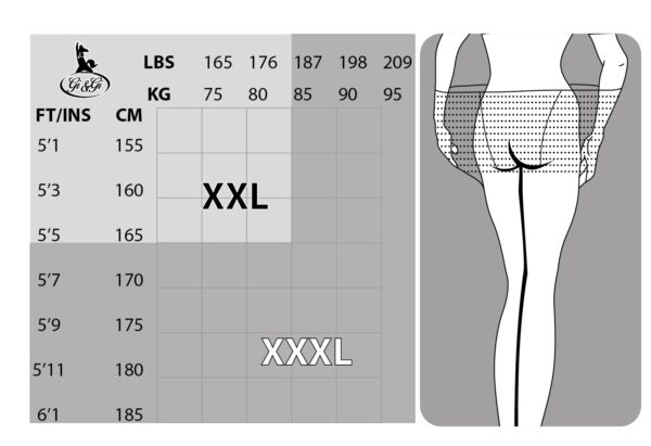 - XXXL: Peso consigliato 86-105 kg, altezza 1,60-1,80 m.
